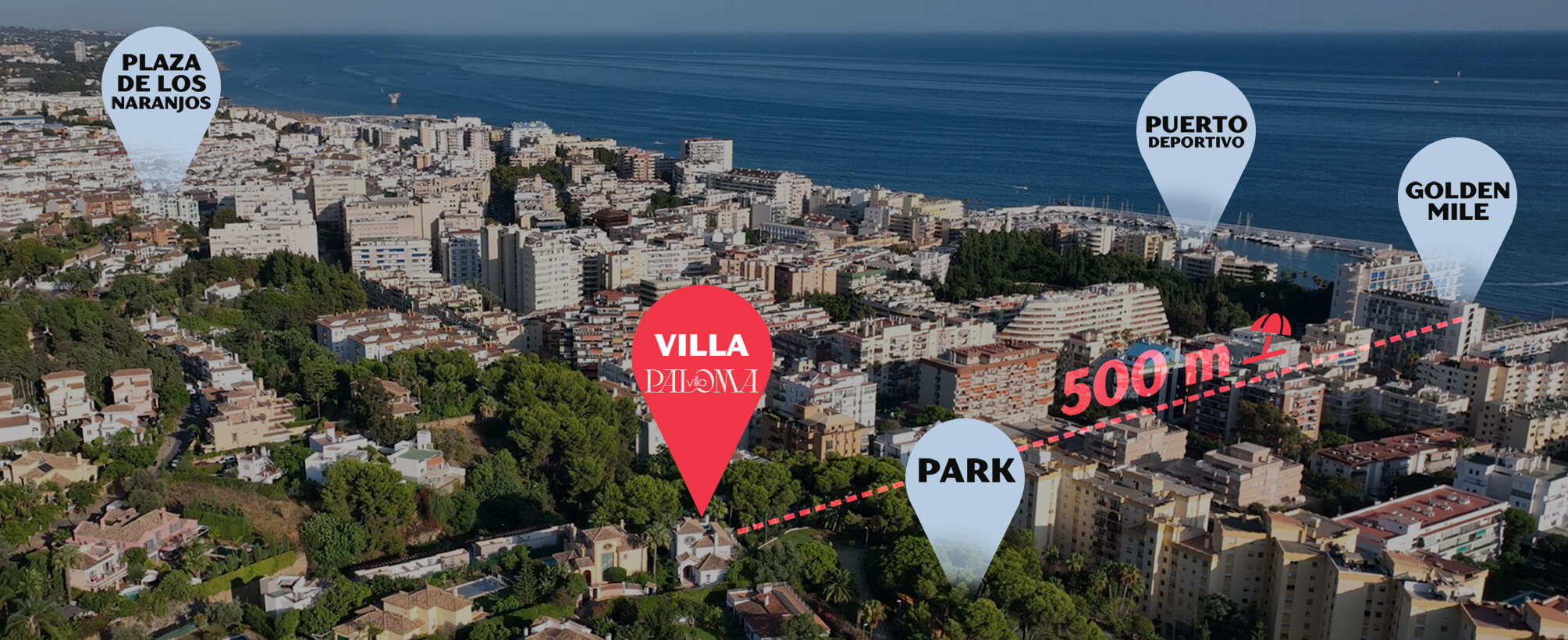 The villa is situated in stunning location 500 meters from the coast of the Golden Mile, but at the same time in a quiet and cosy place.